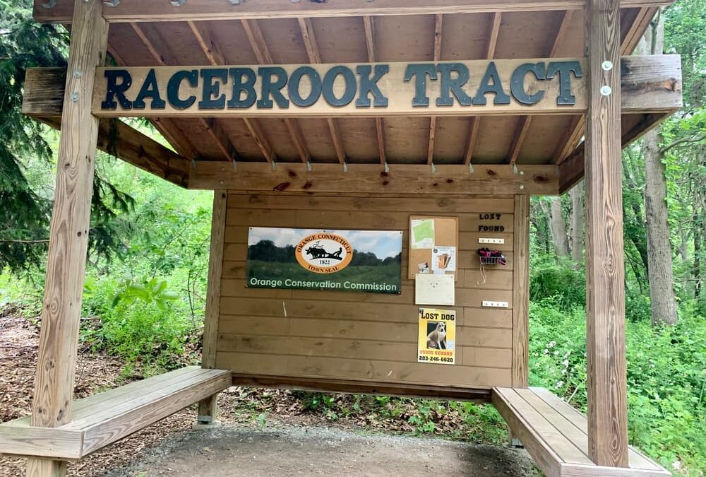 Dogs on leash OK. The Racebrook Tract parking area is located just off Racebrook Road (Route 114) in Orange just north of Derby Ave (Route 34) Can be accessed via the Wilbur Cross Parkway.
